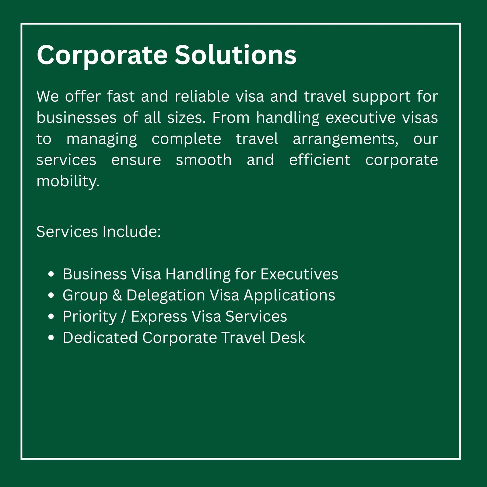 We provide comprehensive visa and travel assistance for individuals, students, and corporates. From documentation to visa approval, our expert team ensures a smooth, transparent, and stress-free experience.
